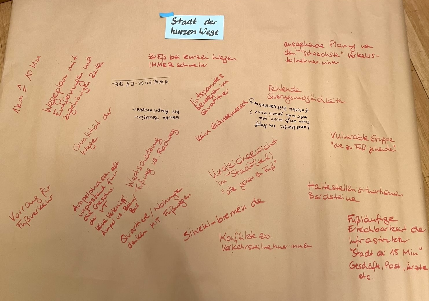 Mehr Vernetzung ist beim Thema Fußverkehr angebracht; ist es doch die Grundlage für aktive Mobilität im Quartier! Eine AG Fuss und/oder ein Runder Tisch Fußverkehr sollten so bald wie möglich an den Start gehen.